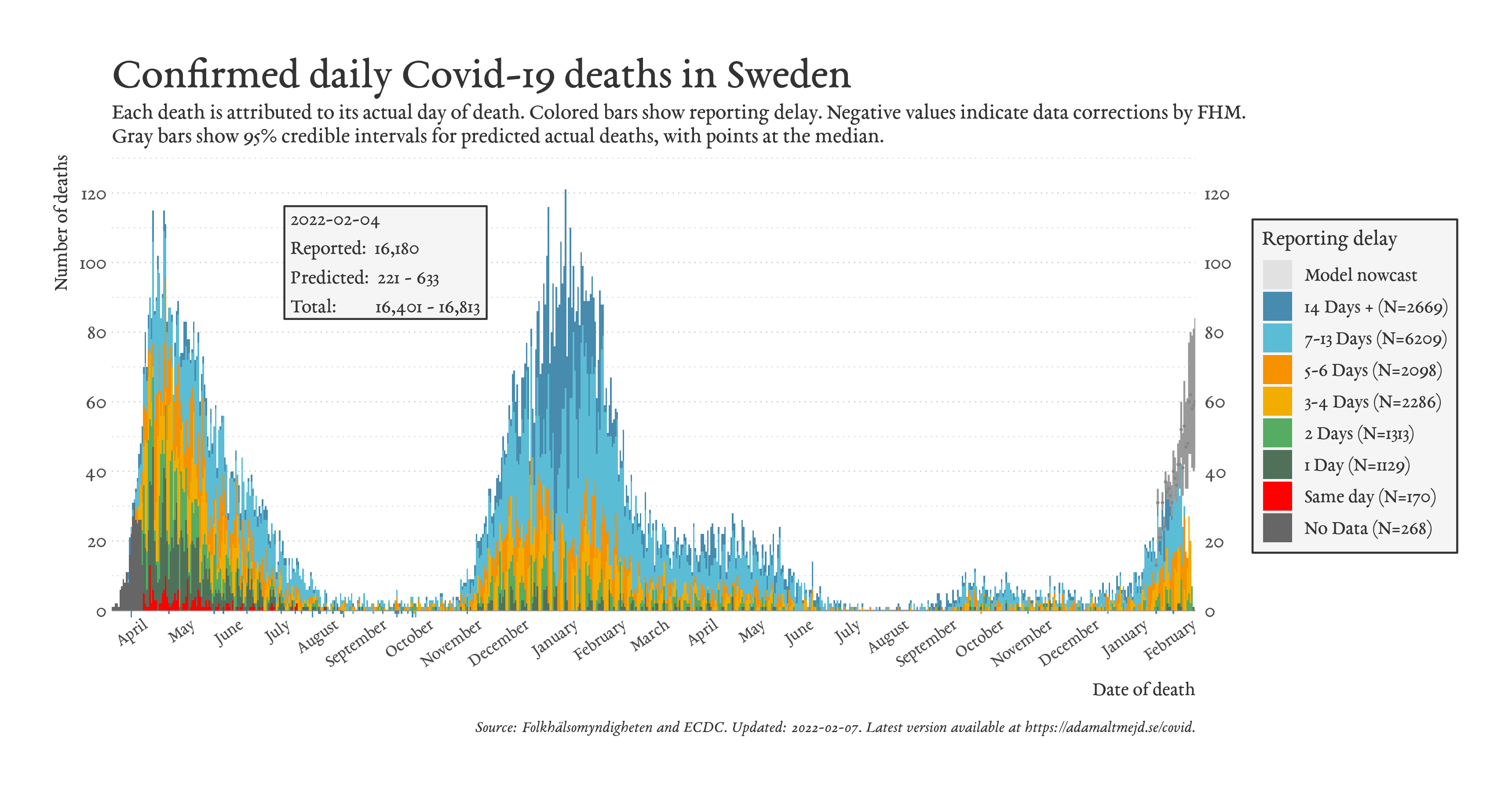 Nowcasting Covid-19 statistics reported with delay. A case-study of Sweden and UK